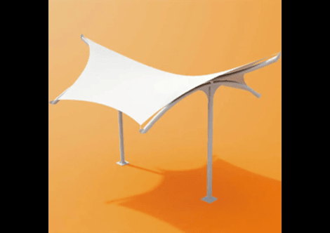 Model kanopi membran dengan bentuk “antiklastik” atau parabola hiperbolik yang memiliki dua lengkungan berlawanan. Desain ini estetis, memiliki tampilan unik seperti sadel kuda, dan unggul dalam mengalirkan air hujan secara alami, menjadikannya pilihan populer untuk peneduh di area komersial maupun residensial.